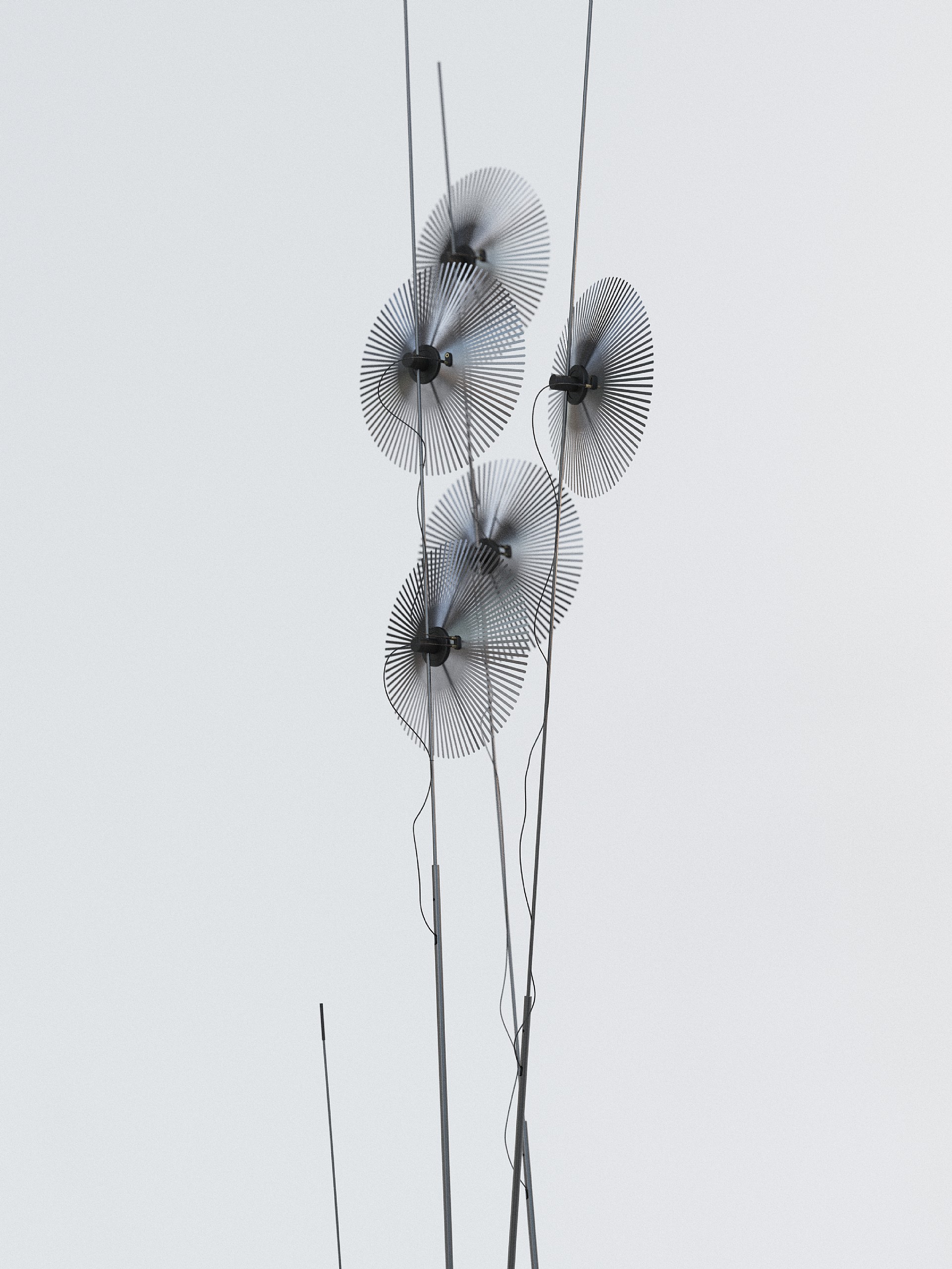 Harper Bloom  落地灯让人联想到湖边的芦苇、蒲公英,也像瞬间绽放的烟花。灯体中的一根空杆同时也是触碰开关:当灯被点亮时,空杆会因自身应力轻轻摇摆,像一只原本停驻的蝴蝶忽然飞走后留下的空意。长按空杆可实现无极调光。微风吹过,整盏灯仿佛有了生命,轻轻摆动,连薄薄的灯罩也会随风微微颤动。